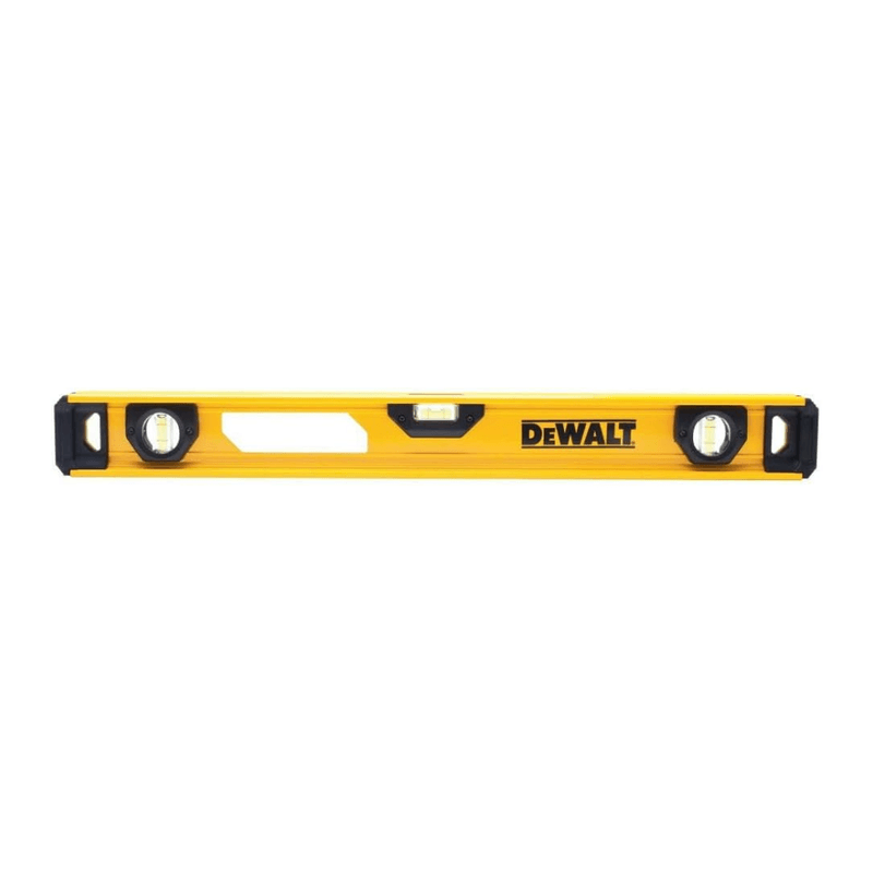 Nivel Magnético DeWalt Premium 24" DWHT42163: Máxima Durabilidad y Precisión. Nivel de burbuja profesional de 24 pulgadas con construcción de aluminio robusto y bordes magnéticos de tierra rara para un agarre excepcional en superficies metálicas. Las burbujas de gran tamaño facilitan la lectura en cualquier ángulo. Ideal para trabajos de herrería y construcción. * Características: Bordes magnéticos de alta potencia. * Precisión: Burbujas de bloqueo MaxEdge™.