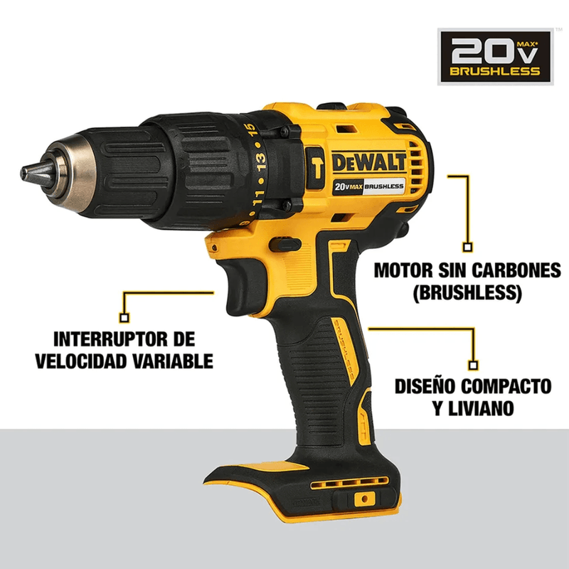 Rotomartillo Inalámbrico DeWalt 20V MAX DCD7781D2: Versatilidad y Potencia Sin Cables. Kit que incluye un rotomartillo de 20V MAX con función percutora para taladrar en mampostería, además de las funciones de taladro y atornillador. Su motor sin escobillas ofrece mayor tiempo de uso. Viene con 2 baterías de litio, listo para usar. * Funciones: 3 en 1: Atornillador, Taladro y Percutor. * Kit: Incluye 2 baterías y maletín.